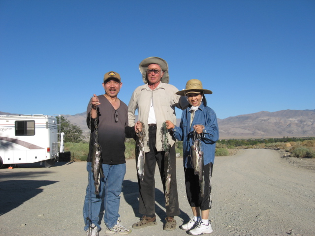 Đang muốn nghỉ vacation để đi đâu chơi.. cho thoải mái, đang tìm chỗ để đi trốn cái nóng cuối hè nầy.. vô tình mình lên mạng check mail.. thấy hình ảnh của chị Ánh (Ryan) gởi về hấp dẫn quá, những con cá trout, cả đống con crawfish, ôi sao vui quá.. mình liền gởi mail cho chị Ánh hỏi chị đường đi, cách thức câu cá trout.. nhất là làm sao để bắt được crawfish... bà chị nầy nói chuyện vui quá... các em muốn lên đây câu.. thì phải đi nhanh nhanh.. vì chị sắp về rồi., về nhà bàn với bà xã là mình nghĩ vài ngày đi câu nhe.. Ok .., thì mình gọi book motel liền.. chị ánh cho biết ở Bishop có hơn 22 cái hotel, lớn nhỏ đủ loại, chị cho mình biết motel Vagabond.. ở rất gần chỗ của chị ở lắm.. mình chọn chỗ đó ngay, mình đi Bishop ngày 9-12/12 .. check in xong .. gọi ngay cho chị Ánh ( chị ơi vợ chồng em đến rồi.. đang ở motel đây, tội nghiệp chị và Bob ( bạn của chị), chờ không tới 10 phút anh chị tới liền, chào hỏi xong.. Bob bảo là còn sớm... mình đi câu buổi chiều nầy đi... em hơi ngỡ ngàng vì mình chẳng có đồ nghề gì cả.. chỉ có hai cái cần câu mang theo thôi.. chị Ánh bảo lo gì chị chuẩn bị cho tụi em hết rồi.. nào là lưởi câu, nào là mồi, câu cá trout phải biết dùng mồi cho đúng, cá mới ăn... cả bọn lên đường cho kịp trước khi trời tối... Bob là người dẫn đường.. đi chừng 15 phút tới nơi.. Bob chỉ cho mọi người cách tóm lưởi câu, cách làm dây, v v...anh chàng rất nhiệt tình lo cho tụi mình đủ mọi thứ.. chị Ánh thì chỉ cách làm sao biết cá cắn câu...biết cách giật dây cho cá mắc câu.. mình thì biết câu nhiều loại cá.. nhưng đây là lần đầu tiên đi câu cá trout.. học đủ mọi thứ, còn bà xã của mình( Lan) chẳng có biết câu là gì.. chị Ánh bảo cá bắt đầu ăn đó.. Lan giật được 1 con.. coi cô ta có vẽ tự đắc lắm.. rồi 2 con... 3 con... mình hơi tức vì dù sao từ ngày sang Mỹ tới giờ mình câu cá thường xuyên mà... mình tự nhũ có lẽ cô ta hên đó thôi...rồi lan lại tiếp tục giật nữa..4 ..5 ..rồi 6 .. lúc đó mình chưa có con nào.. hà hà người nào đi câu cá lần đầu tiên trời hay chiếu cố họ mà.. rồi tới lúc mình cũng có được vài con.. Bob và chị Ánh là sư phụ mà dĩ nhiên là được nhiều rồi.. hôm đó bà xã của mình trúng jackpot vì có tới 9 con cá lận... riêng mình chỉ có vài con thôi.. tổng cộng hôm đó mọi người được 18 con cá trout... về nhà tối hôm đó có được một bữa ăn tối cá tươi chiên, cuốn với bánh tráng rau thơm, nước mắm chua, pha thêm tương ngọt...thật một bửa ăn nhớ hoài... Ngon Lắm quí vị ơi.. cá tươi mới câu về còn tươi xanh, ăn liền thì còn gì bằng... Vừa ăn vừa kể lại kỷ niệm thời học sinh của ngôi trường HD thân yêu... chị Ánh là đàn chị vì thời chị vào lớp đệ thất thì thầy Xuân làm hiệu trưởng.. còn mình và bà xã vào đệ thất thì là thầy Vịnh.. vừa ăn vừa nói .. chỉ tội nghiệp anh chàng Bob nhà ta chẳng có hiểu trời trăng gì cả.. tụi mình cười thì anh cũng hì hì cho vui.. nói chuyện cho đến tối rồi cũng phải chia tay, nghỉ dưỡng sức cho chuyến hành trình ngày mai vui hơn và dài hơn.. vì có thêm tiết mục bắt crawfish.. cám ơn chị Ánh, cám ơn Bob đã cho vợ chồng mình ăn bửa tối thật ngon.....